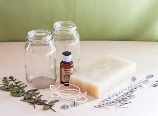 - 1 Vaso de vidrio resistente al calor (puedes usar vasos de velas que ya hayas gastado)